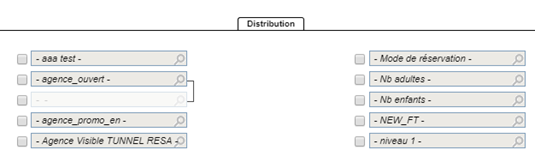 - Répartition de la zone de recherche Distribution sur 2 colonnes si plus de 20 critères sont disponibles sur la page. Le nombre de critères peut être modifié,