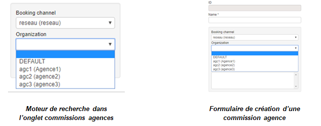 Les libellés des utilisateurs sont désormais aussi affichés entre parenthèses dans les listes des canaux de réservations de l’onglet commission agence.