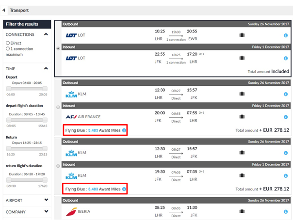 Grâce à une connexion directe avec la solution « 30K », il est désormais possible d’afficher le nombre de miles à gagner sur chacun des vols affichés dans le processus de réservation pour le programme « par défaut ou basique » de la compagnie aérienne.