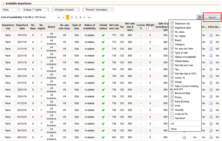 Pourquoi ? La section « Export » de l’onglet Configuration permet d’exporter en masse des listes de produits et de disponibilités, mais elle ne permet pas d’exporter facilement le calendrier d’un package. Lorsque l’on s’intéresse aux disponibilités d’un package précis, un export réalisable en un clic, au format Excel, et permettant d’exporter uniquement les caractéristiques sélectionnées est plus adapté.