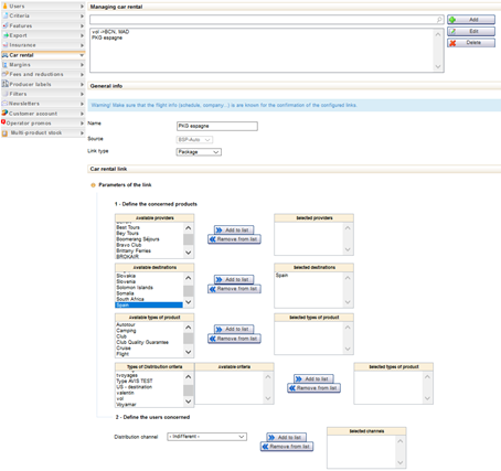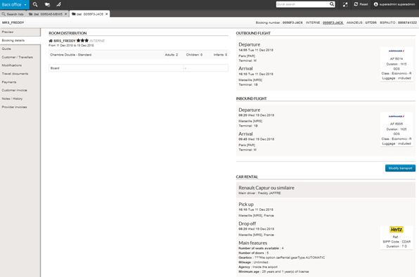 - En prestation optionnelle, via une nouvelle section « Location de voiture » de l’onglet « Configuration ».