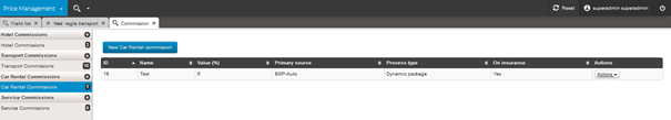 Les prestations locations de voiture sont également compatibles avec les yields et les commissions du module de gestion tarifaire.