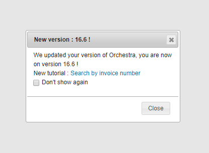 Pour l’instant sur le Back-office, suite à une mise en production d’une nouvelle version de la plateforme en environnement client, l’utilisateur est alerté par une pop-in qu’une nouvelle version a été déployée, et que de nouveaux tutoriels sont disponibles.