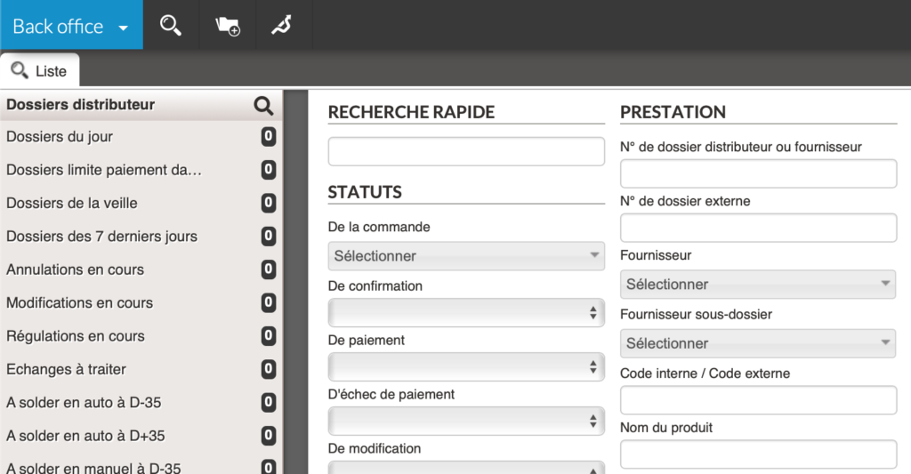 Dans le back-office Orchestra, le moteur de recherche permet d’accéder aux dossiers répondant à des critères.