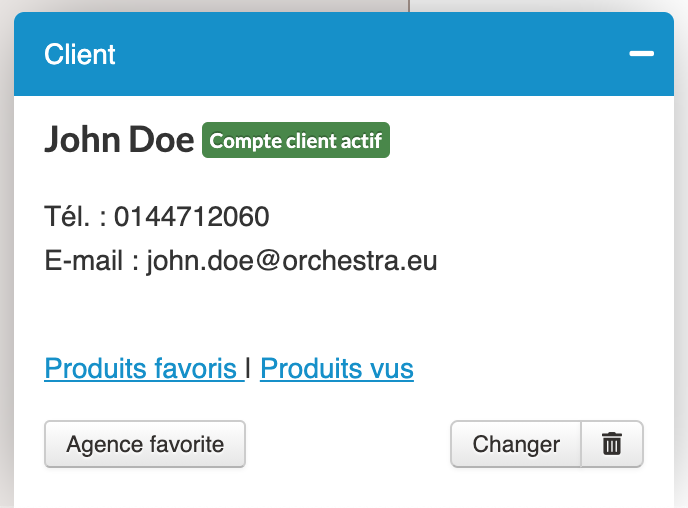 A chaque client peut aussi être associé une agence favorite. Cette agence peut-être ajoutée ou modifiée par l’agent de voyage, ou en toute autonomie par l’internaute sur son compte client.
