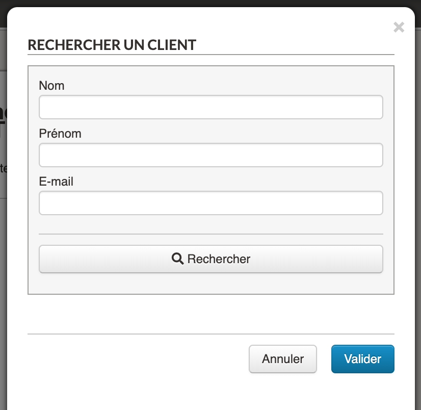 Auparavant dans l’outil professionnel de vente Produits et Réservation B2B, le client aura été sélectionné par l’agent de voyages via le formulaire de recherche, ou sera reconnu automatiquement si un couplage téléphonie-informatique a été mis en place.