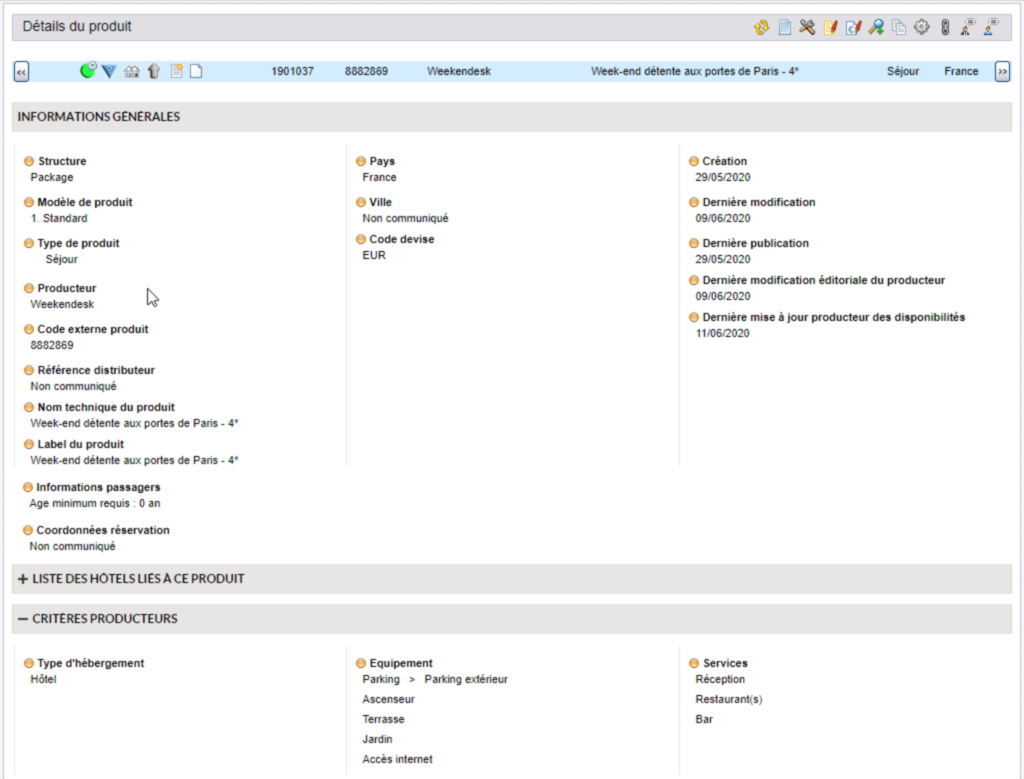Les critères producteurs (autrement appelés Keywords) sont des caractéristiques des voyages récupérés via le contenu des partenaires afin d’ajouter des informations importantes aux produits, nous pouvons les voir dans la section Critères Producteurs dans l’Administration.