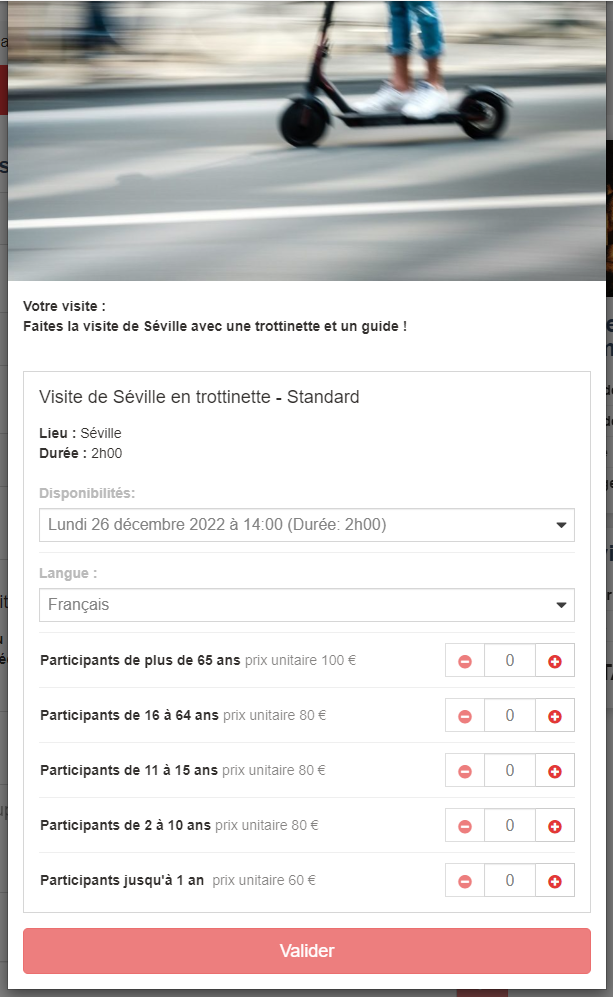 Sur le processus de réservation, il est désormais proposé un menu de sélection par tranche d’âge et non pas une sélection par passager un à un en fonction du formulaire de réservation.