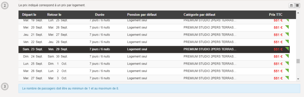 Dans la continuité de la directive Omnibus, qui va réduire le volume d’apparition des prix « brochure », les prix « Promos » seront mis en avant en rouge dans le module de réservation pour les Professionnels (B2B)