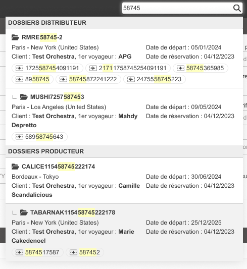 Cette fonctionnalité est accessible depuis la section « Modification » du dossier pour les utilisateurs disposant du droit associé. En lançant la « Réservation d’une nouvelle prestation » depuis un dossier, l’utilisateur est redirigé vers le B2B où il peut effectuer une réservation qui sera ensuite ajoutée au dossier initial.