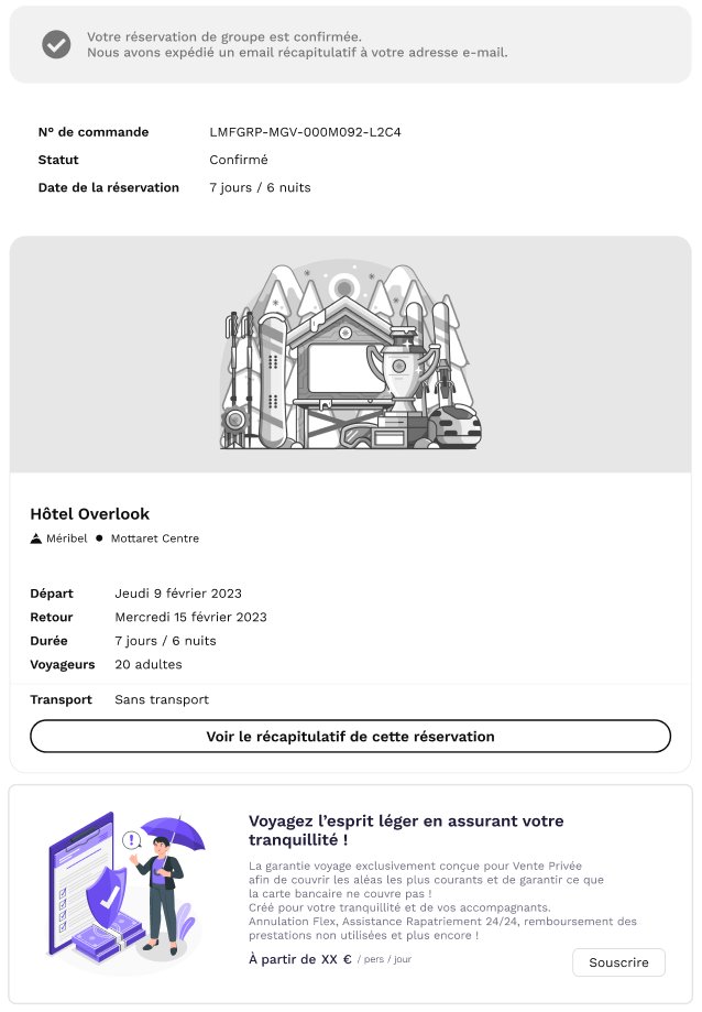 Un exemple est présenté ci-dessous sur la confirmation de la réservation.
