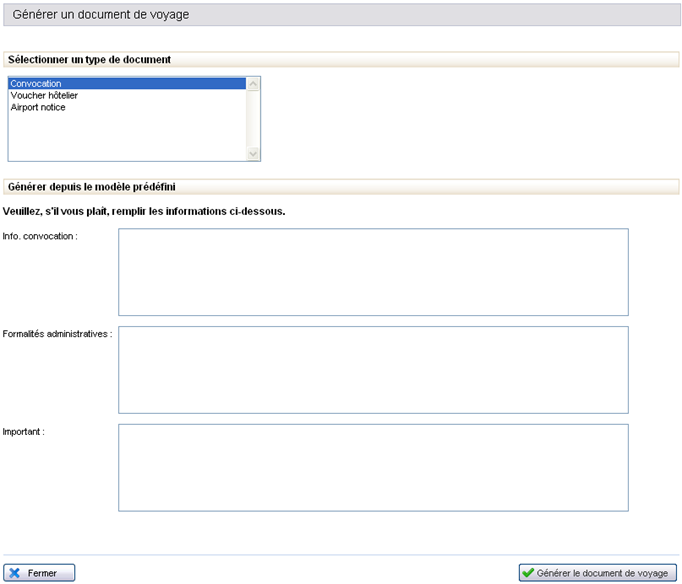 Pour cela l’action ‘Générer documents de voyages’ est ajoutée.