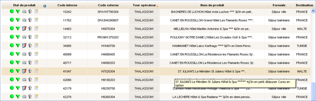 Affichage des statuts des documents de voyage dans le résultat de recherche