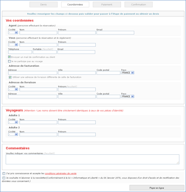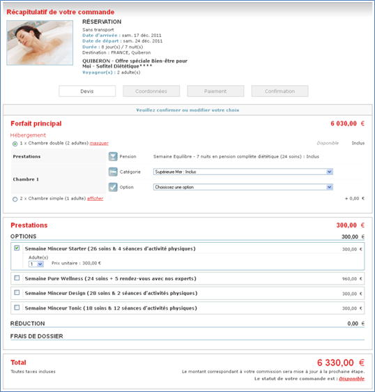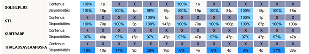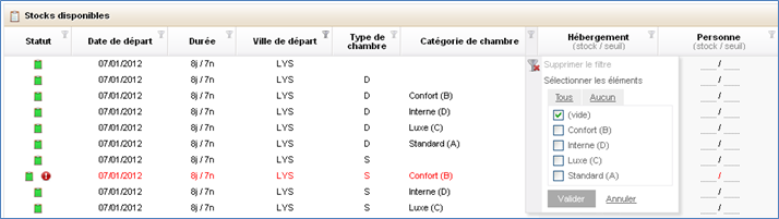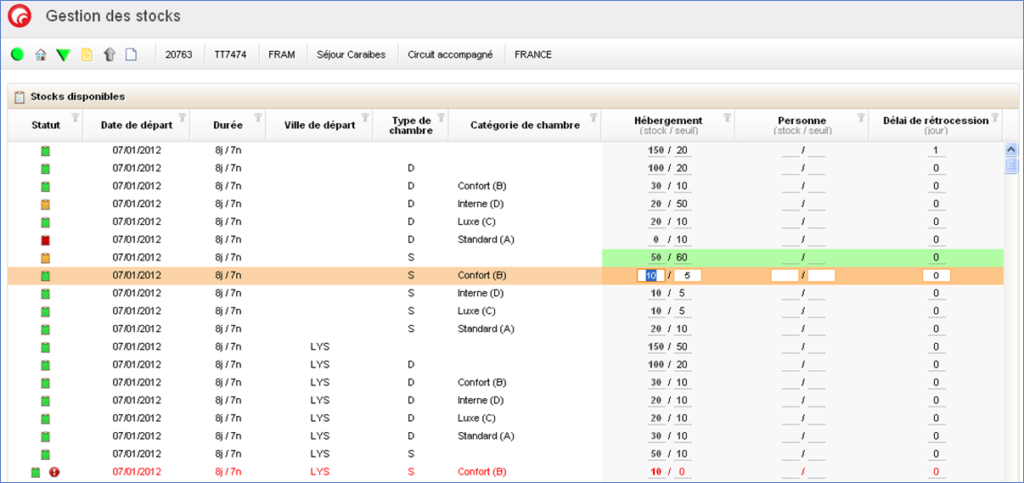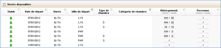 Elle permet de définir des stocks par villes de départ, par durée, par type de chambre et/ou par catégorie de chambre. Il est également possible de définir des stocks indépendamment de certains paramètres comme par exemple de la ville de départ ou du type de chambre.