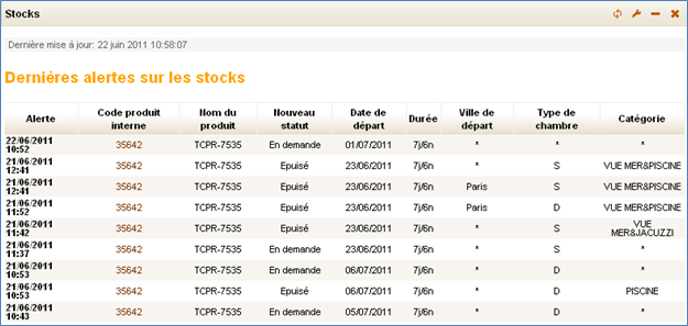 Le dashboard des stocks a également été mis à jour pour prendre en compte la nouvelle gestion des stocks et pour permettre de suivre en temps réel les alertes sur les changements de statuts et les fermetures de disponibilités.