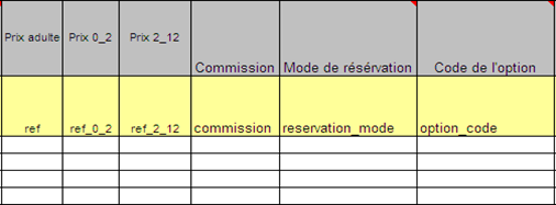 Cette fonctionnalité permet la saisie dans la grille tarifaire de taux de commission différents entre les options et le forfait principal pour les produits internes.